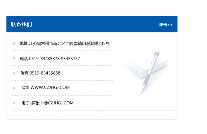 地址:常州市新北區友邦商務大廈1幢16、17層  電話:0519-85101652  傳真:0519-85112595  郵編:213022  網址:www_cz-jiayue_cn.gzttgs.com  郵箱:xiajifengaa@163.com